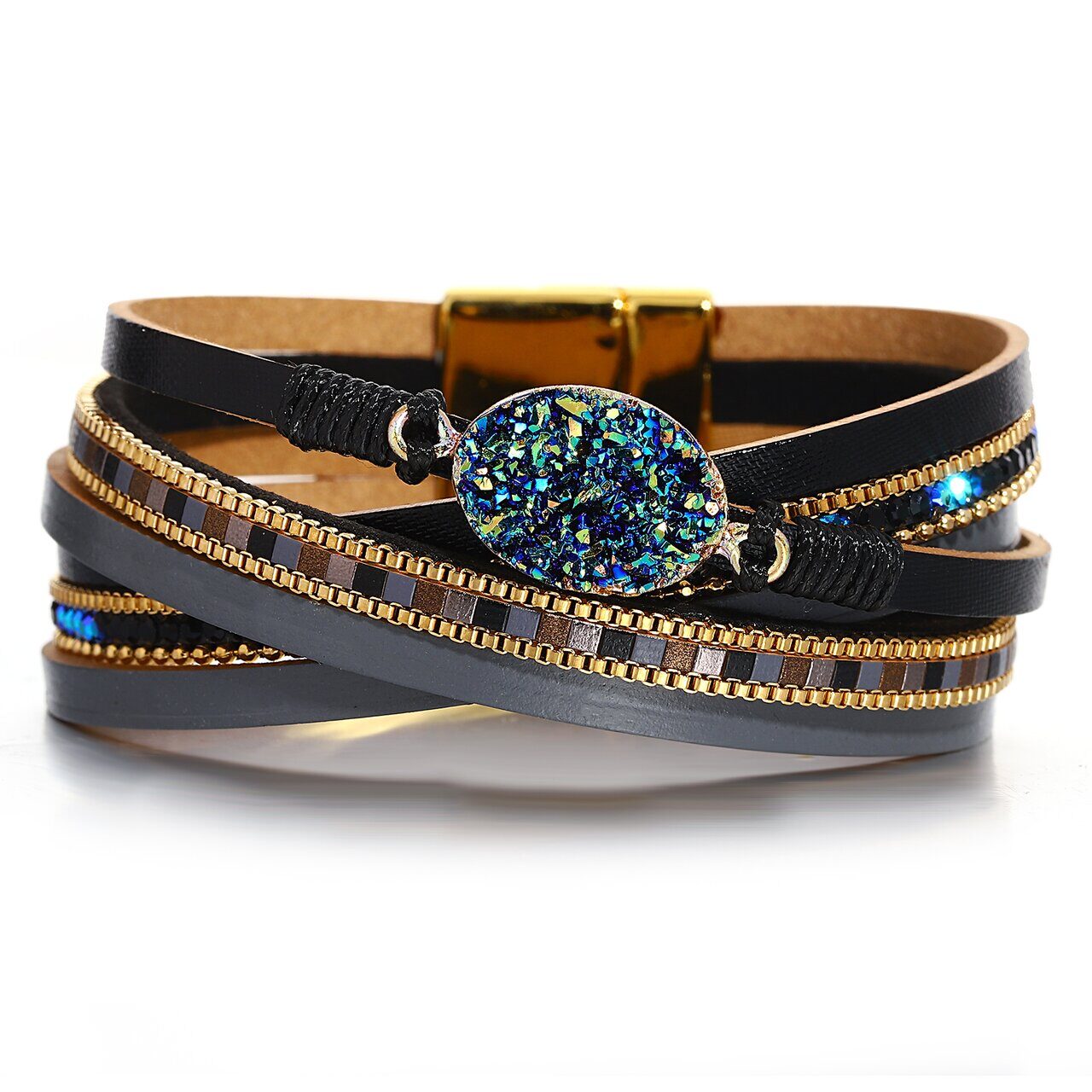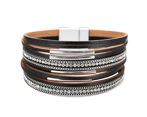 Браслет из кожи и стали, стекло, ALBW122ч