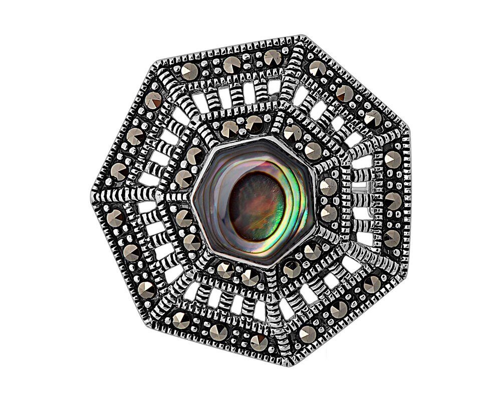 Брошь, марказит , перламутр зелёный, SL-AGA1836