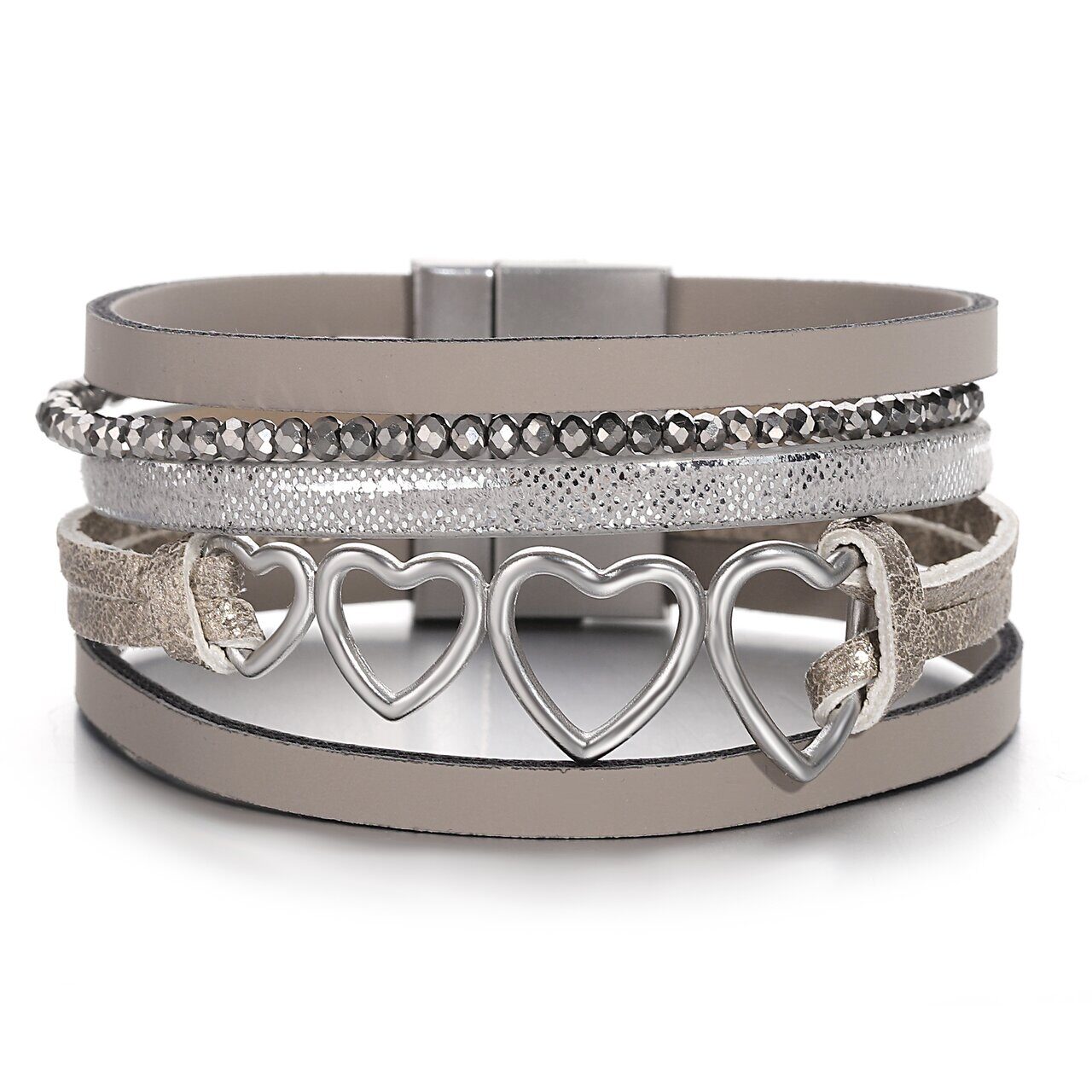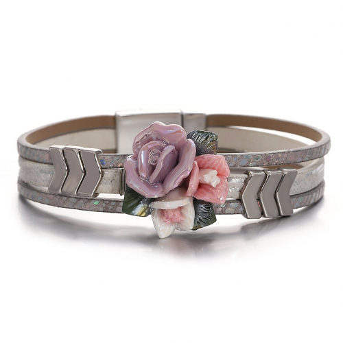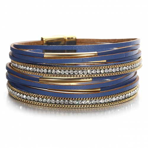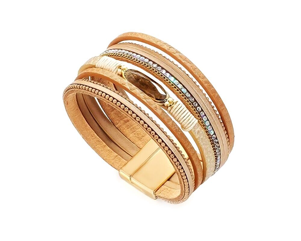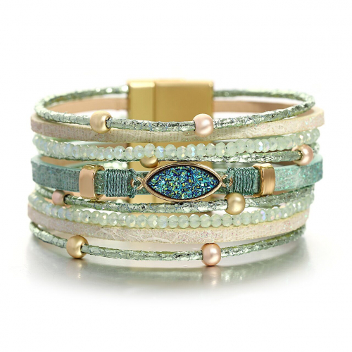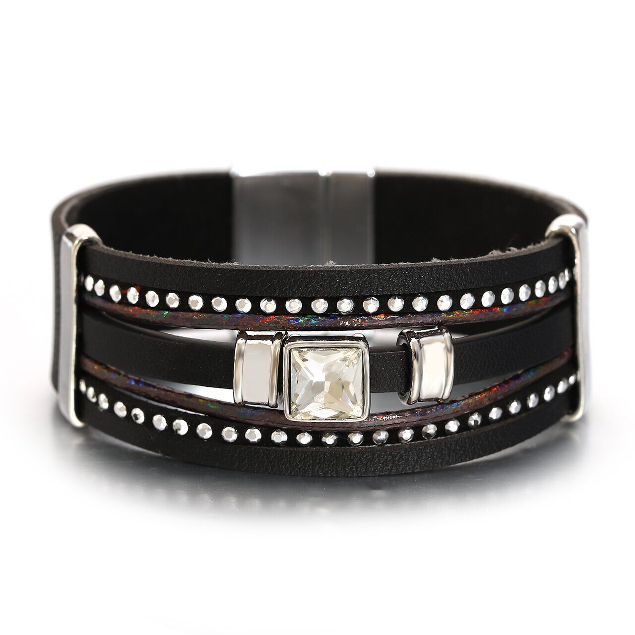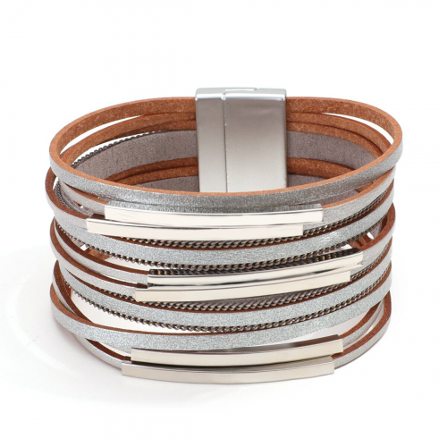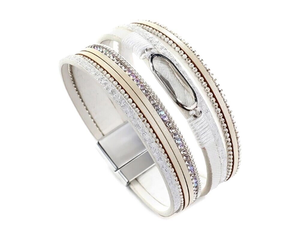 Браслет, кожа , сталь , стекло, ALBW171сер