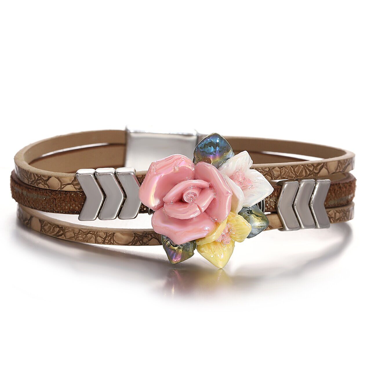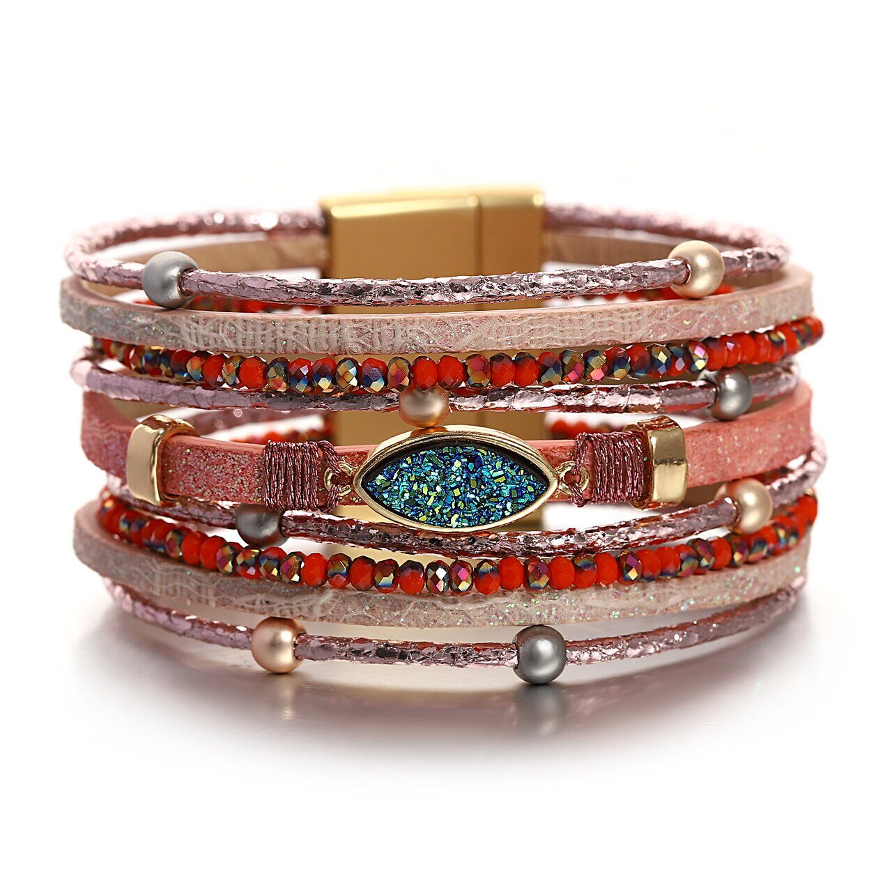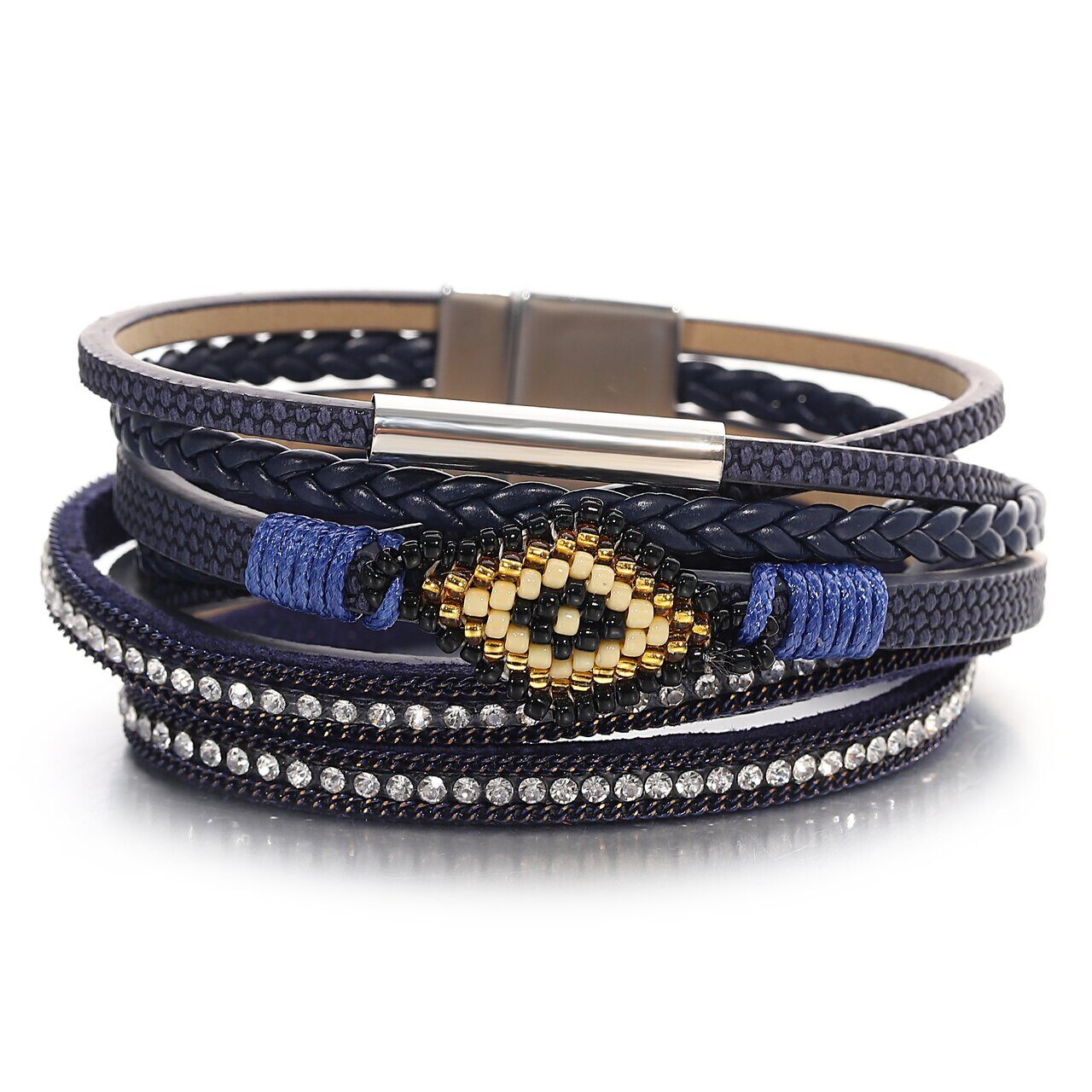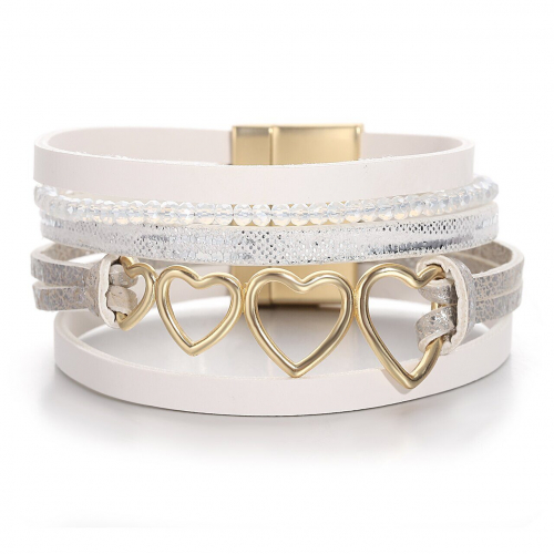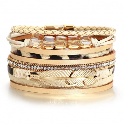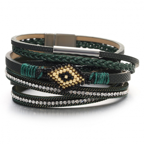 Браслет, кожа , сталь , стекло, ALBW171сер