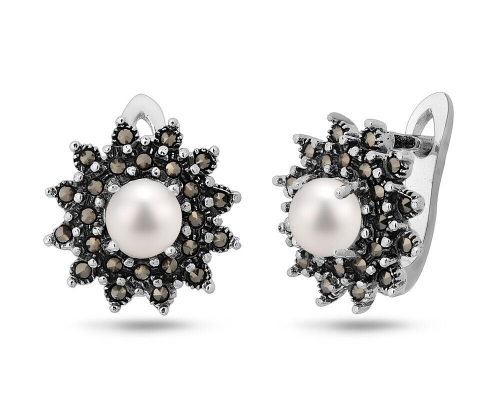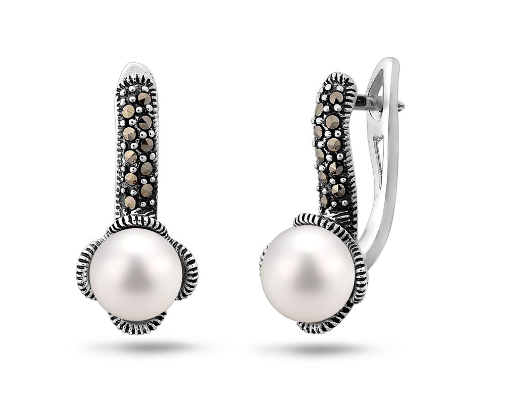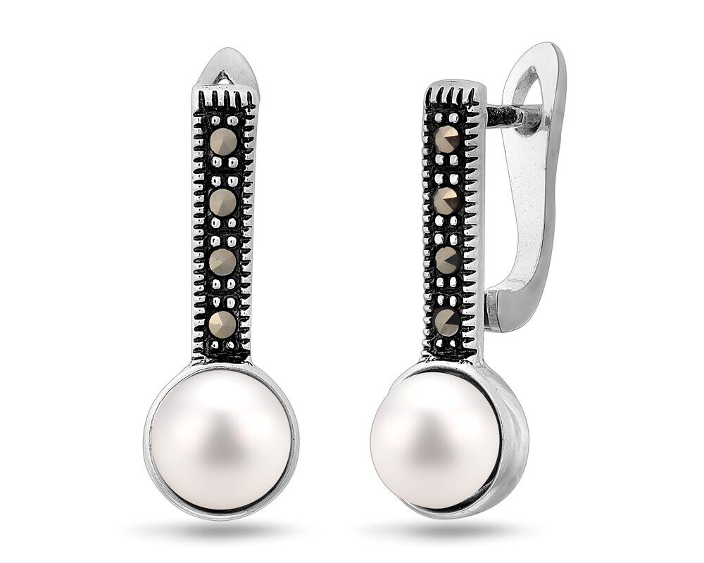 Серьги, жемчуг , марказит, SL-AGA1338