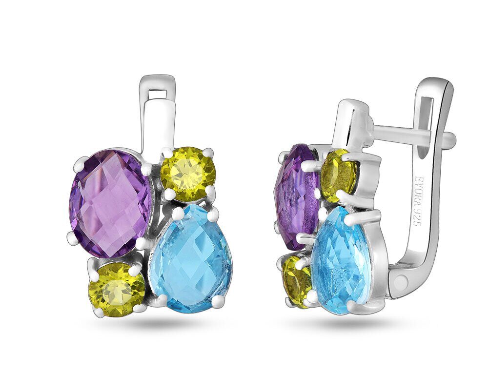 Серьги, аметист , перидот , топаз, Даниэлла