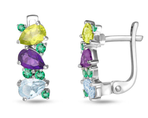 Серьги, аметист , перидот , топаз , наноизумруд, Эвиана