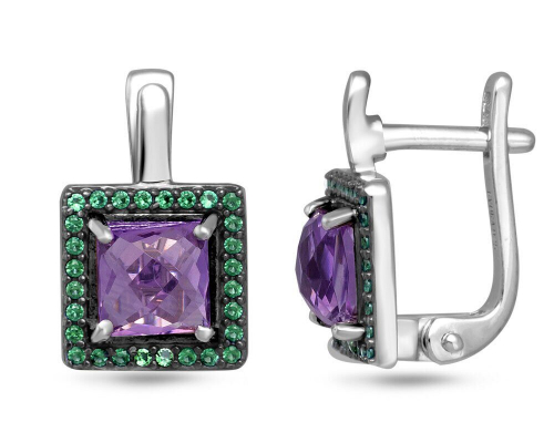 Серьги, аметист , наноизумруд, Алсу