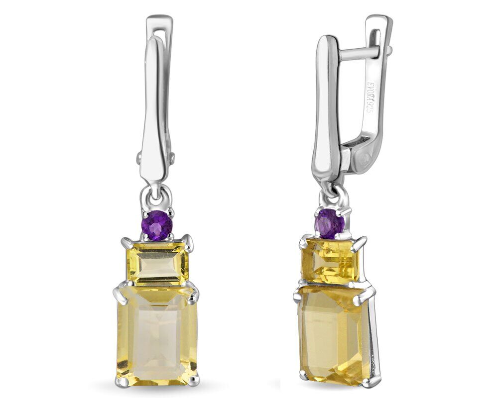 Серьги, аметист , лимонный топаз, Симпл