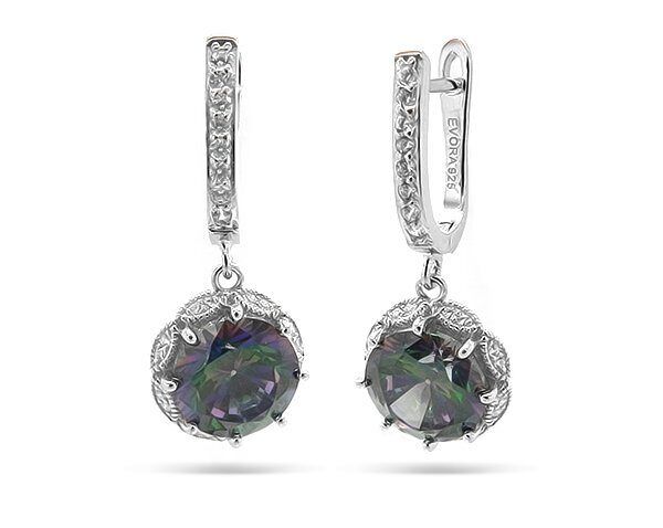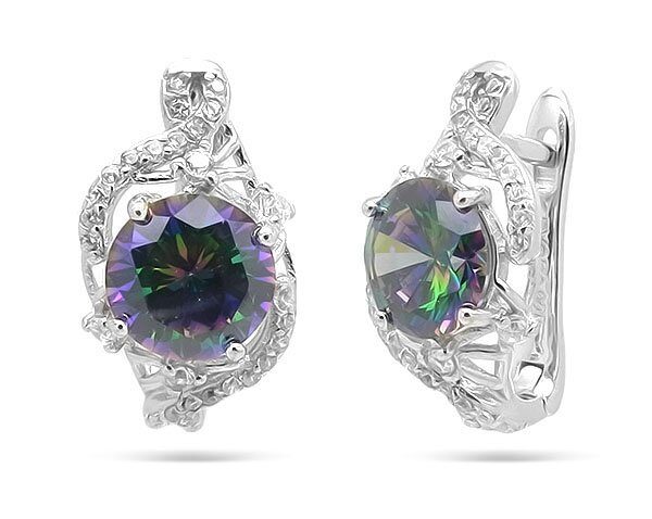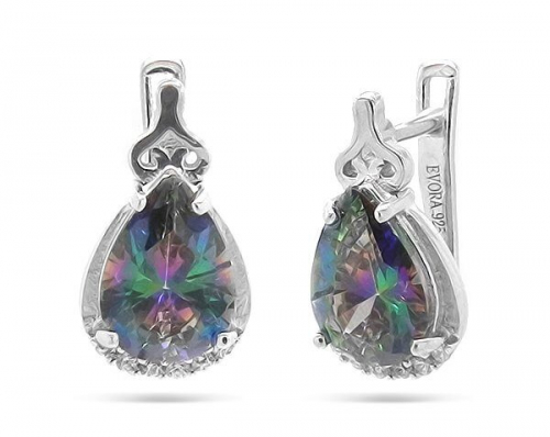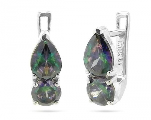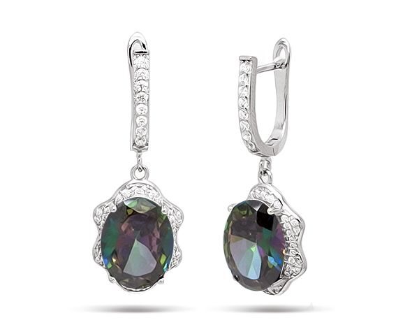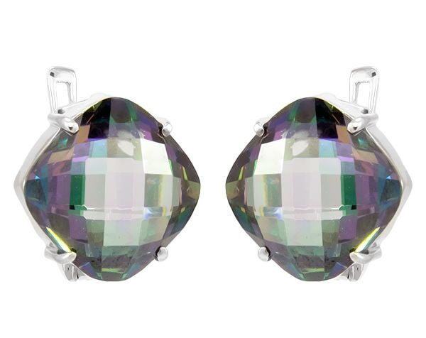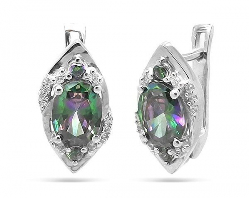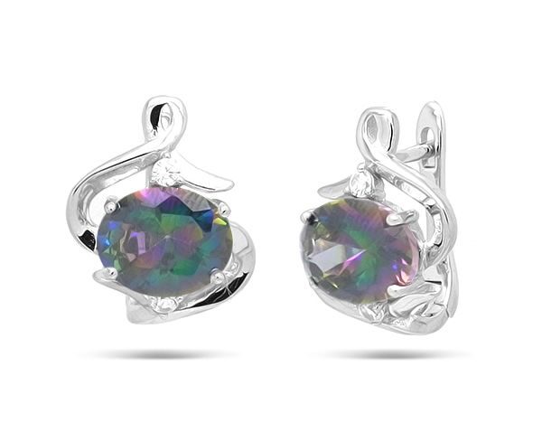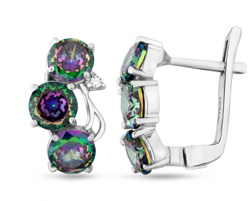 Серьги из серебра мистик кварц, МЦВ1046мк
