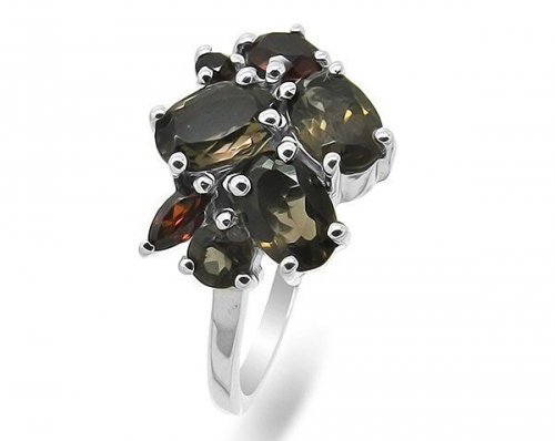 Кольцо из серебра гранат, раухтопаз, Нола