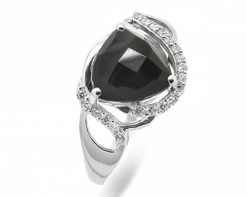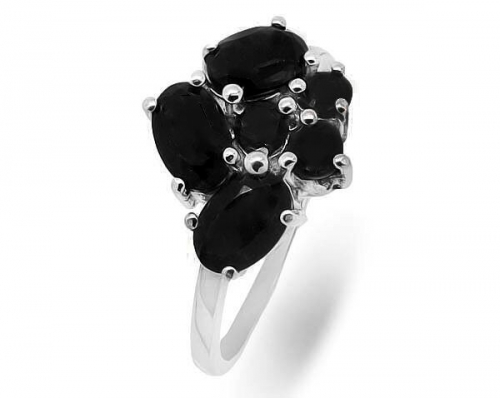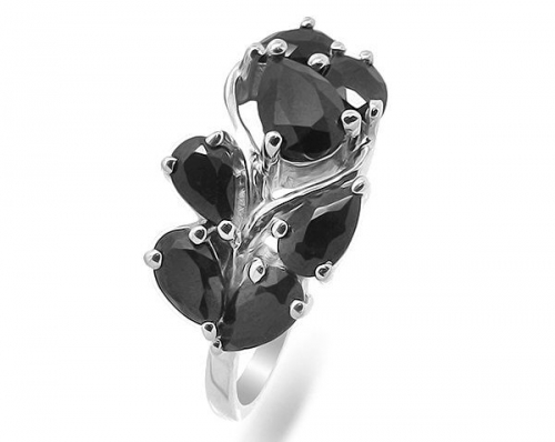 Кольцо из серебра сапфир корунд, Брюнетка