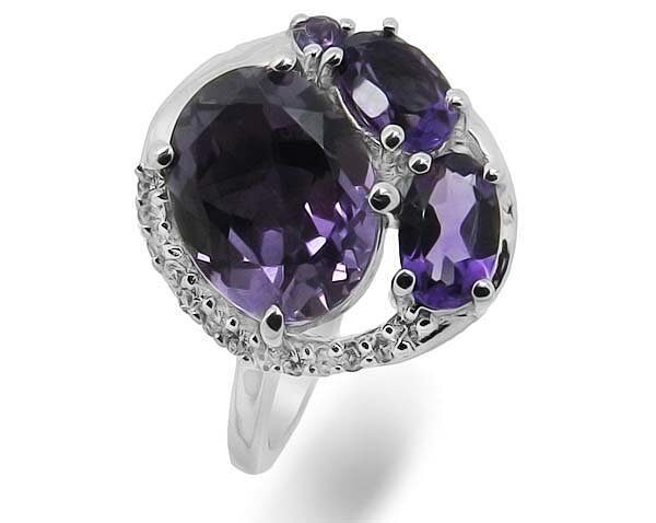 Кольцо из серебра аметист, синт.александрит, Дайон