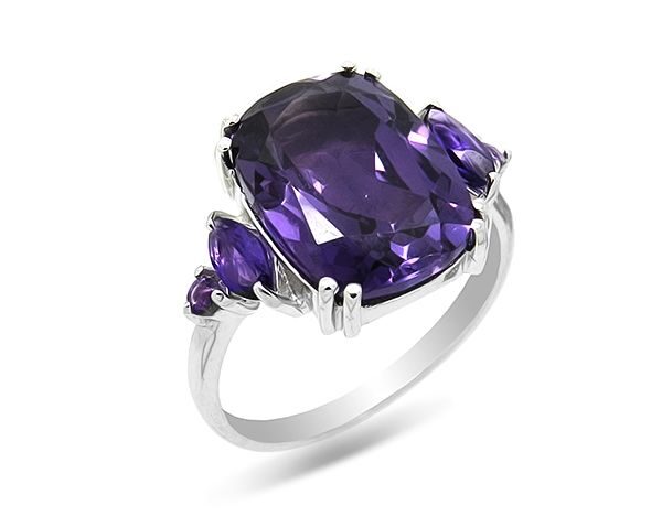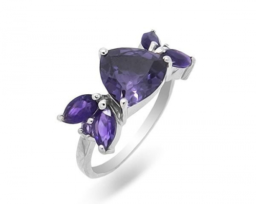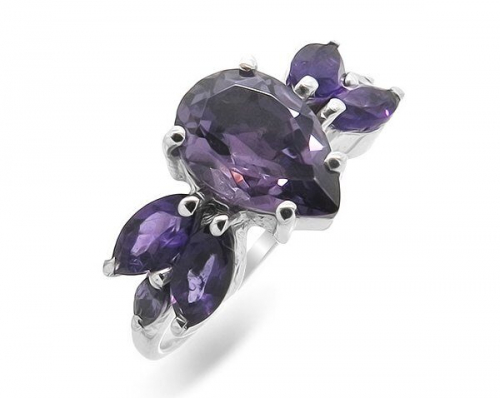 Кольцо из серебра аметист, синт.александрит, Флоретта