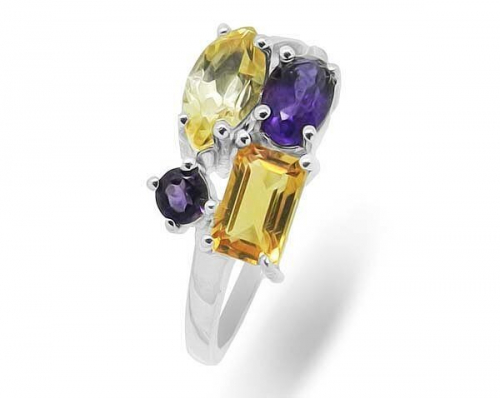 Кольцо из серебра аметист, цитрин, Модерн