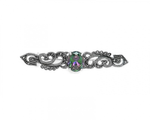 Брошь из серебра марказит, мистик кварц, SL-AGA144