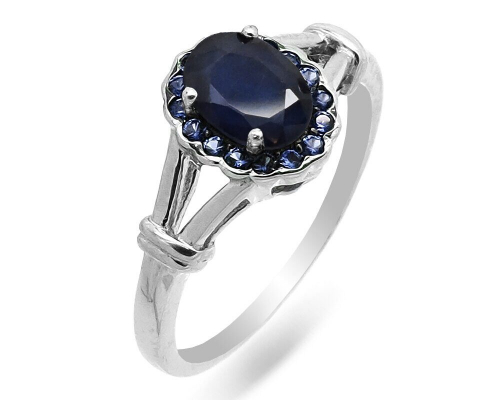 Кольцо из серебра сапфир корунд, Акита