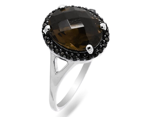Кольцо из серебра раухтопаз, шпинель, Валинта