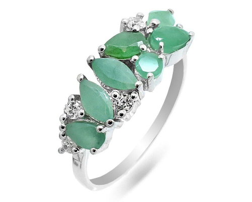 Кольцо из серебра изумруд, куб.циркон., Вермонт
