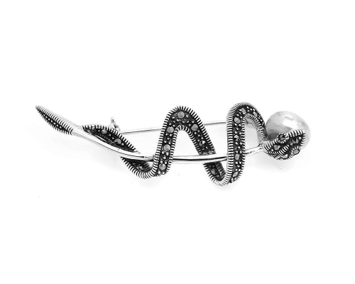 Брошь из серебра жемчуг, марказит, SL-AGA1507
