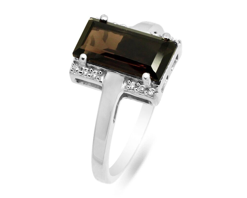 Кольцо из серебра раухтопаз, Багет