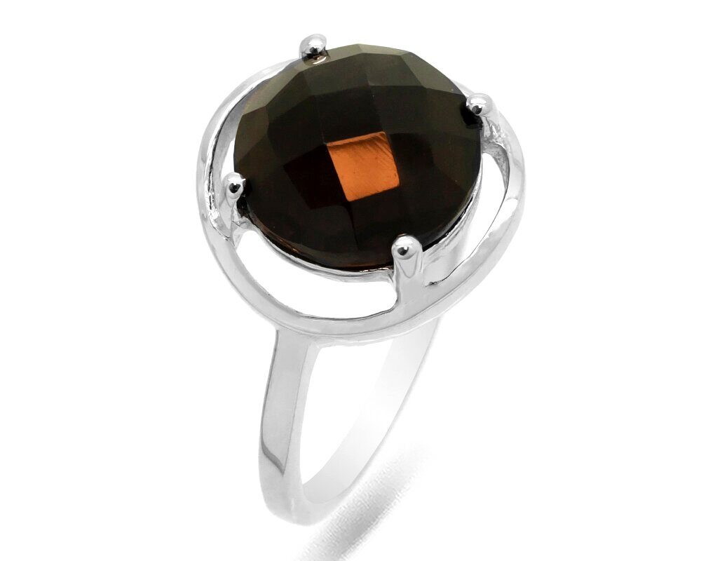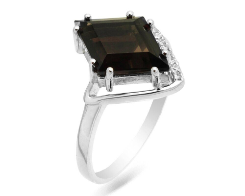 Кольцо из серебра раухтопаз, Ромбина