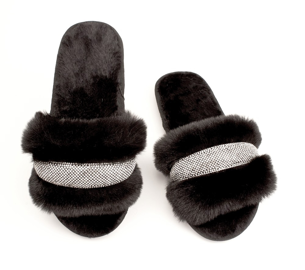 Fashion T1348-4Z Туфли домашние женские чер иск мех+текстиль