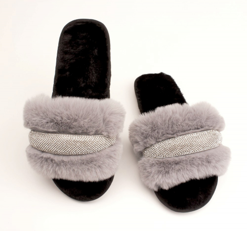 Fashion T1348-5Z Туфли домашние женские сер иск мех+текстиль
