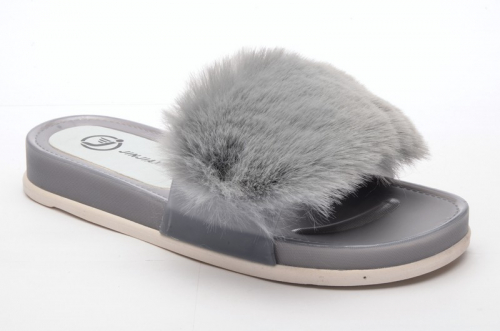 Fashion SB0888 Обувь пляжная женская сер иск мех