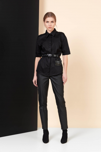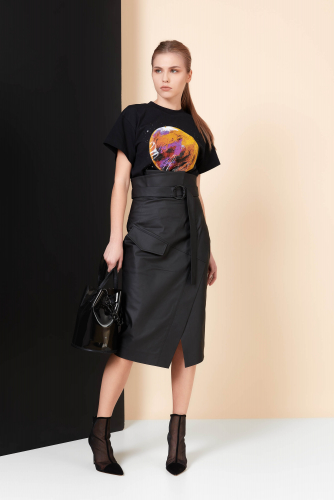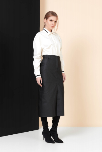 Юбка женская под кожу (ткань: 66%хлопок, 30% полиэстер, 4%эластан)