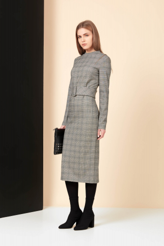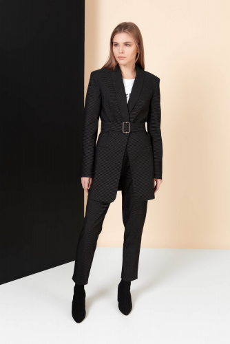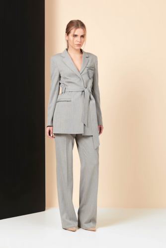 Комплект женский (жакет+юбка+блуза), клетка серая
