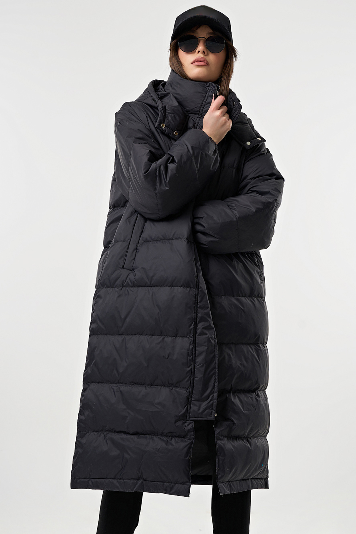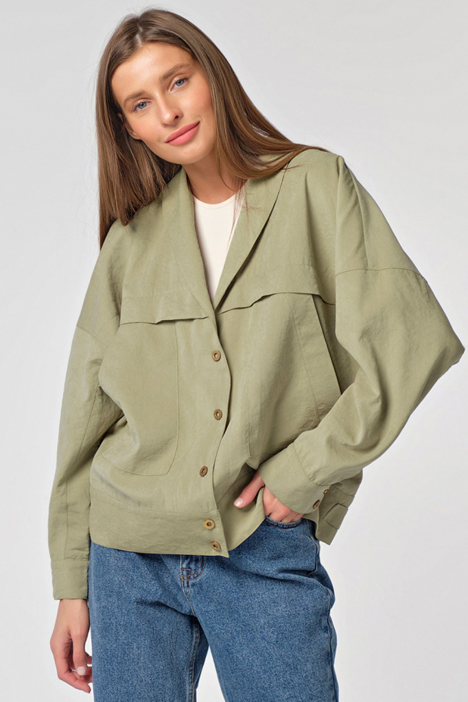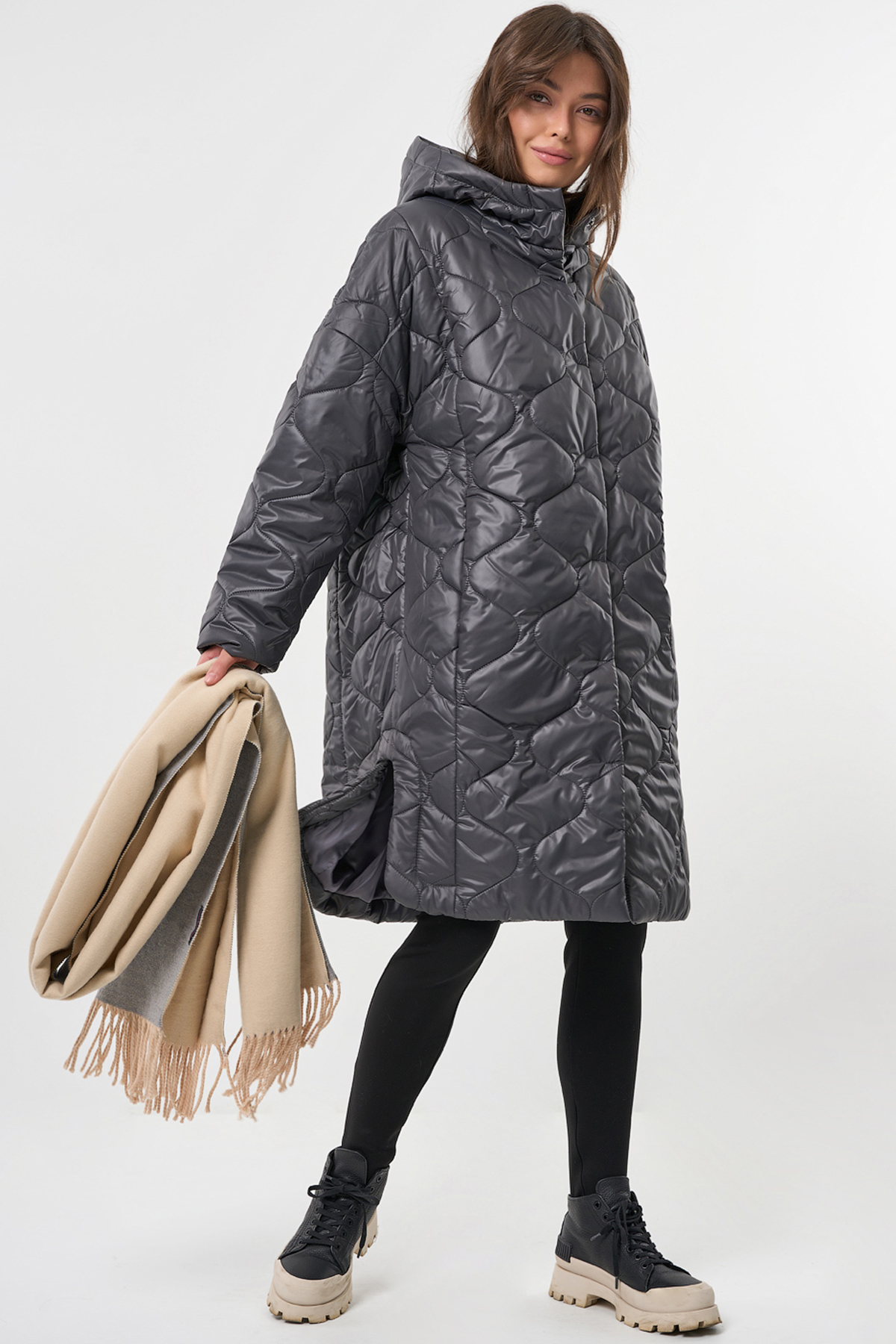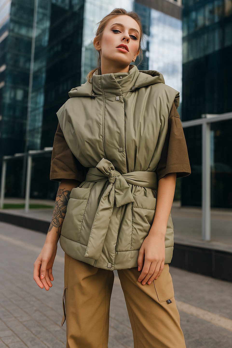 Жилет утепленный оверсайз на молнии с капюшоном оливковый