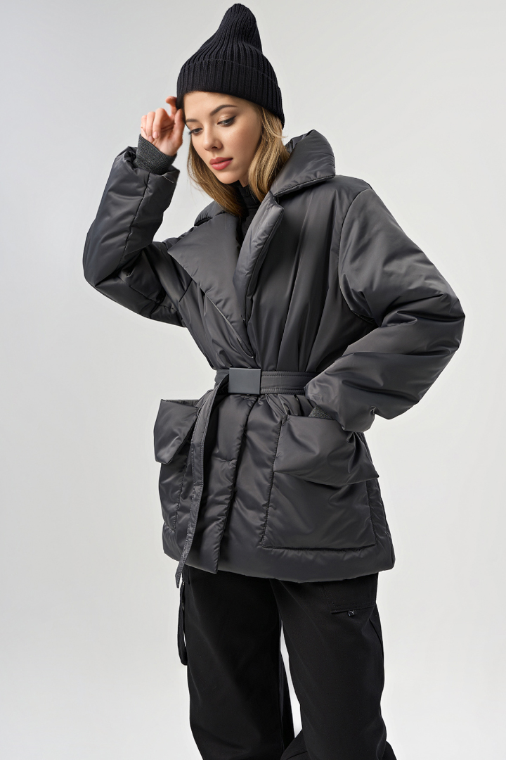 Жилет утепленный оверсайз на молнии серо-зеленый