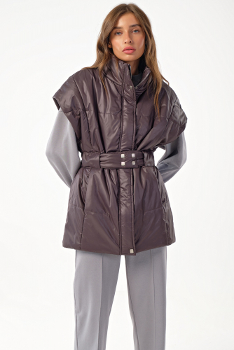 Жилет утепленный оверсайз на молнии с капюшоном коричневый