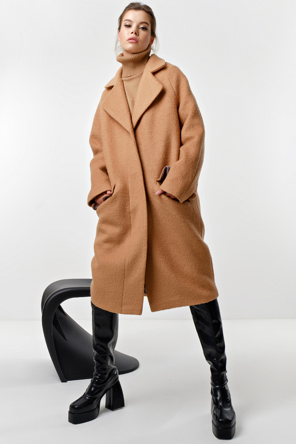 ст. цена5989руб.! Пальто оверсайз длинное из шерсти кэмел