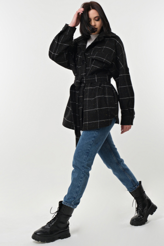 ст. цена6875руб.! Пальто-рубашка укороченное клетка на черном