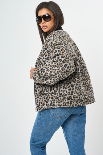 ст. цена6290руб.! Бомбер леопардовый из пальтовой ткани с шерстью на утепленной подкладке