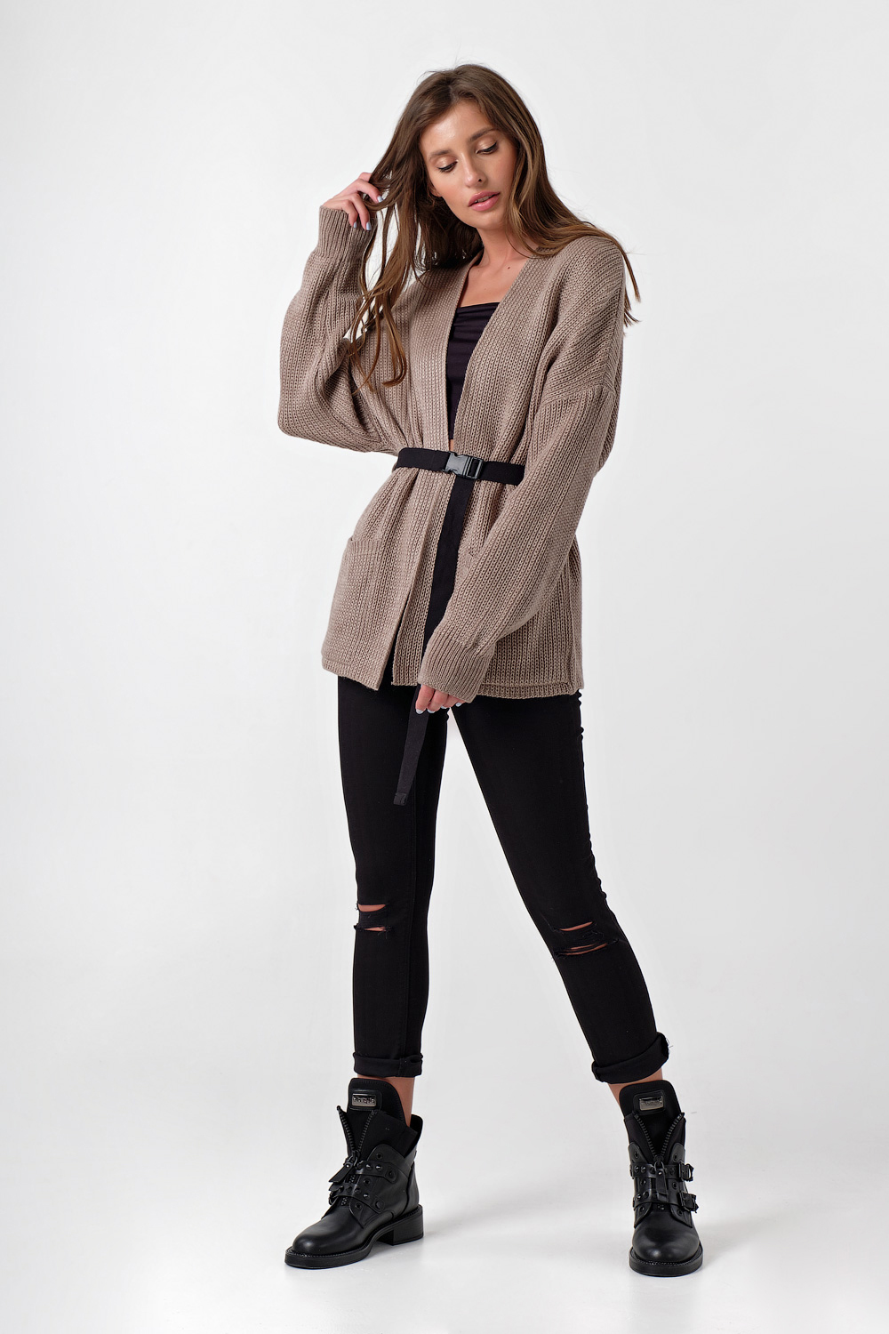 ст. цена2017руб.! Кардиган вязаный оверсайз теплый бежевый меланж