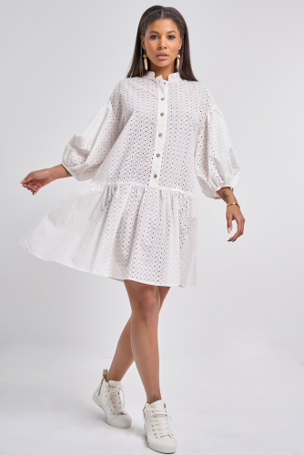 ст. цена2790руб.! Платье летнее с имитацией кружева из хлопка белое
