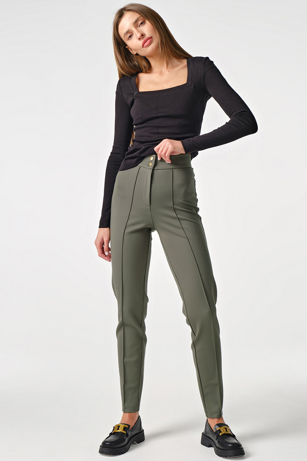 ст. цена2893руб.! Брюки трикотажные с высокой посадкой стрейч хаки