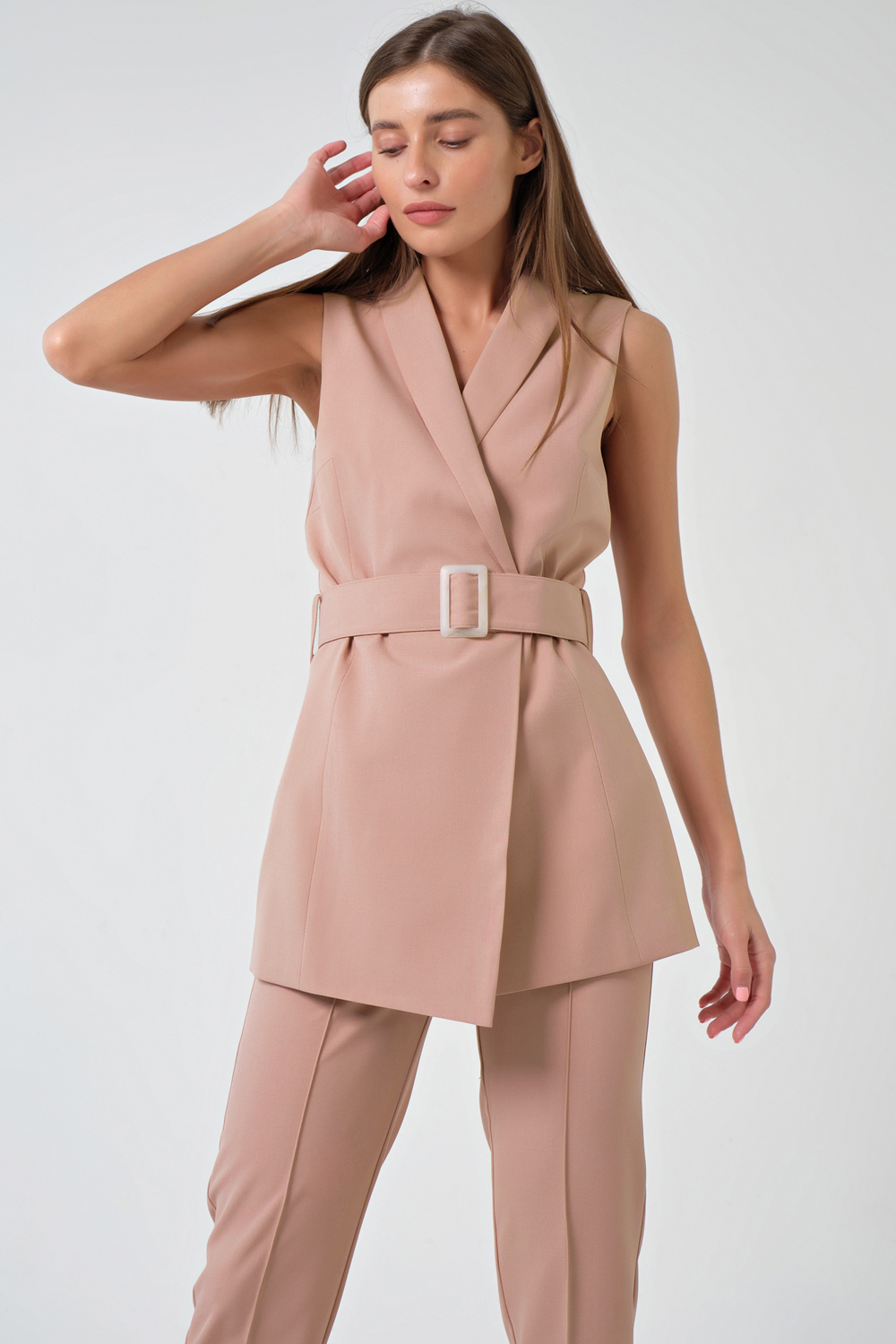 ст. цена4358руб.! Костюм офисный брючный с жилетом пудровый