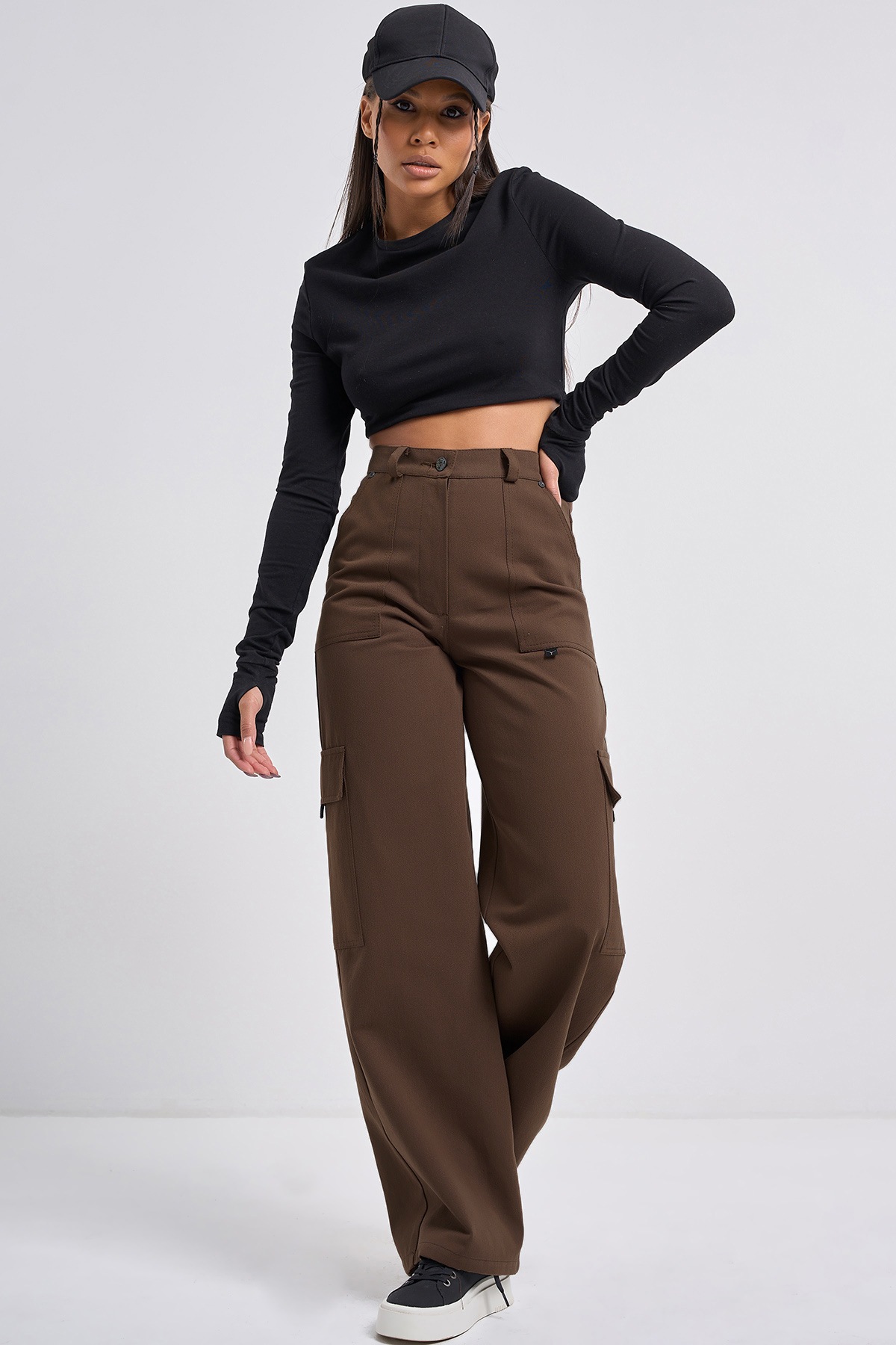 ст. цена2490руб.! Брюки карго прямые хлопковые коричневые