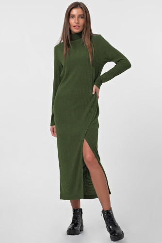 ст. цена2248руб.! Платье-лапша миди с запахом и разрезом по ноге хаки