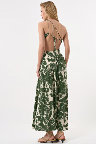 ст. цена3245руб.! Платье летнее макси с открытой спиной из вискозы джунгли на ванильном