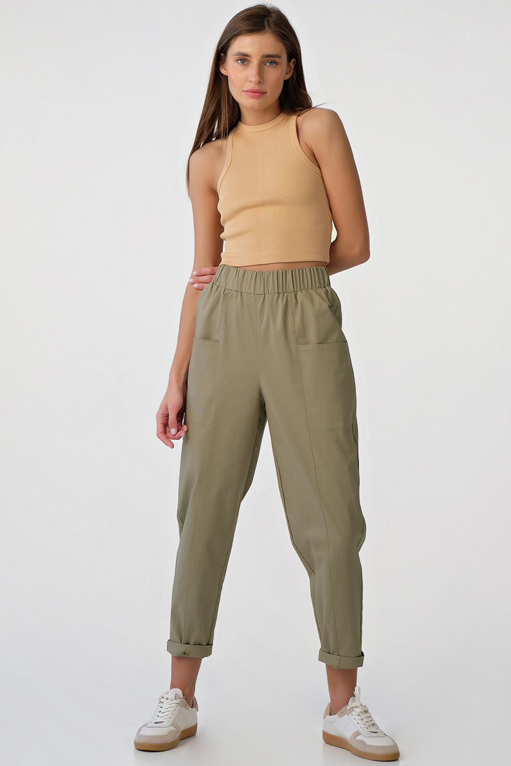 ст. цена2302руб.! Брюки бананы летние на резинке из хлопка хаки
