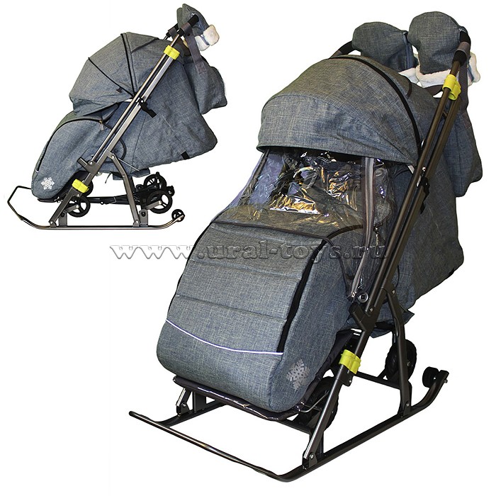 Санки-коляска Кидс 3-3С (серо-зеленый джинс)