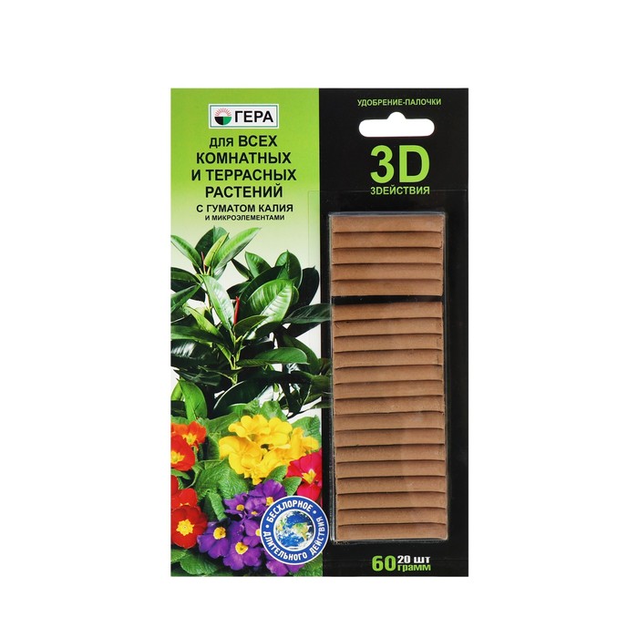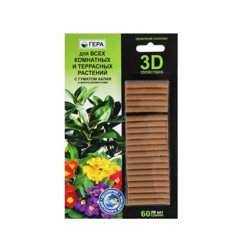 Удобрение «Гера 3D» для всех комнатных и террасных растений с гуматом калия, палочки, 60 г