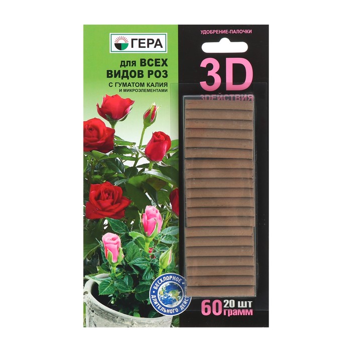 Удобрение «Гера 3D», для всех видов роз, палочки, 60 г