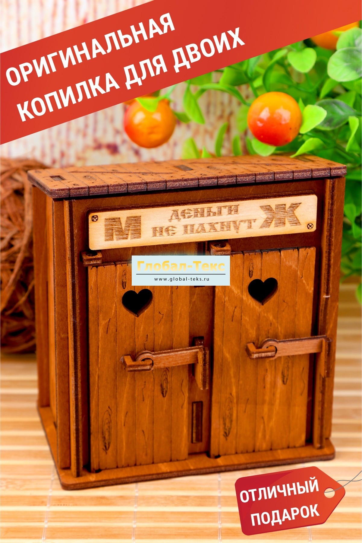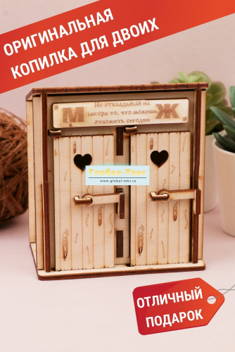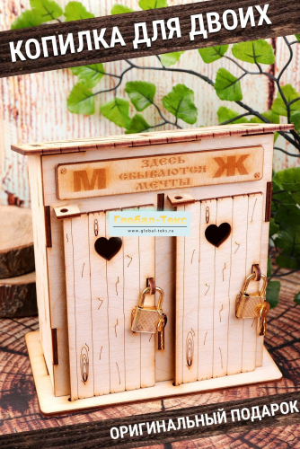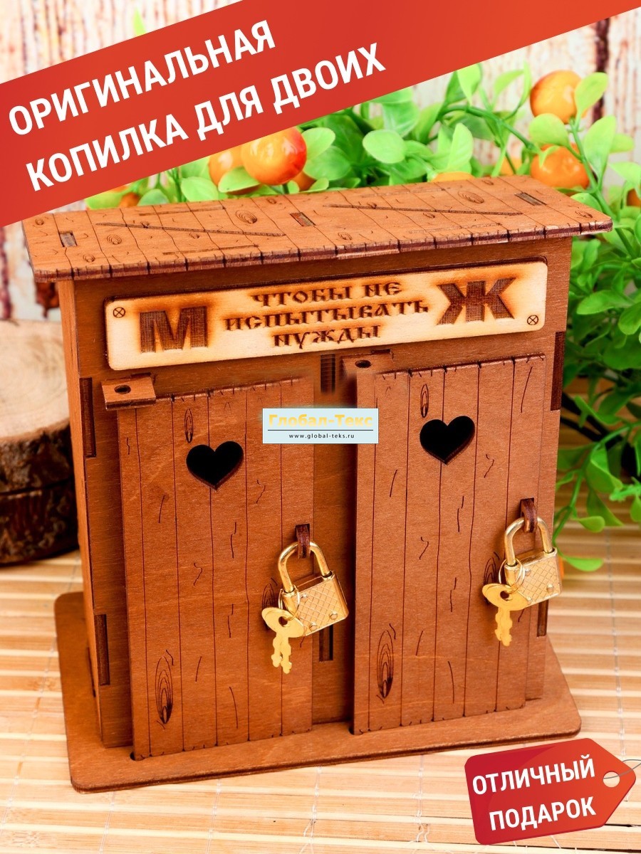 Копилка "Туалет двойной" коричневый деревянный замок маленький №ФС-24
