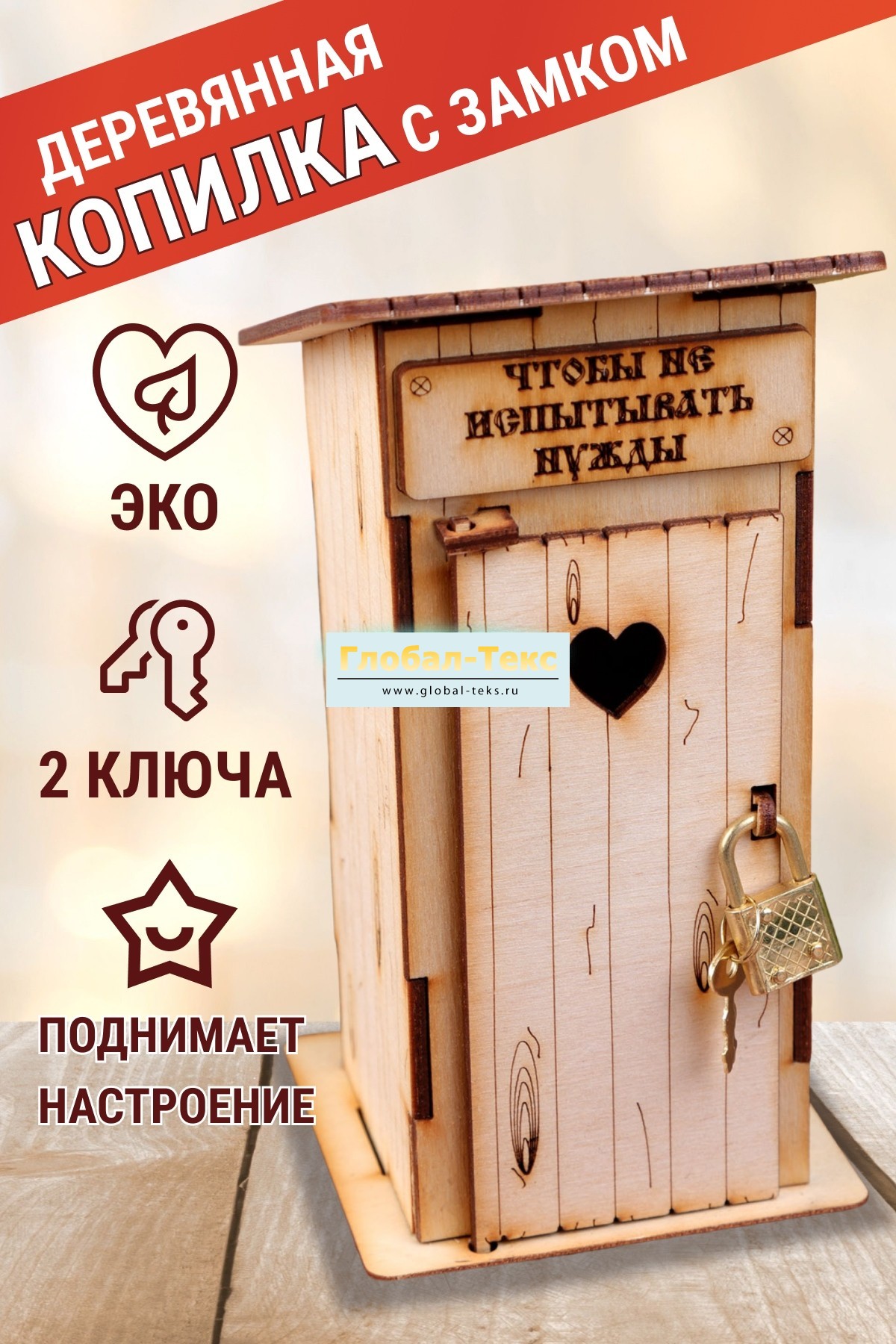 Копилка коричневая "Туалет" (маленький, деревянный замок) №ФС-48 (24/108)