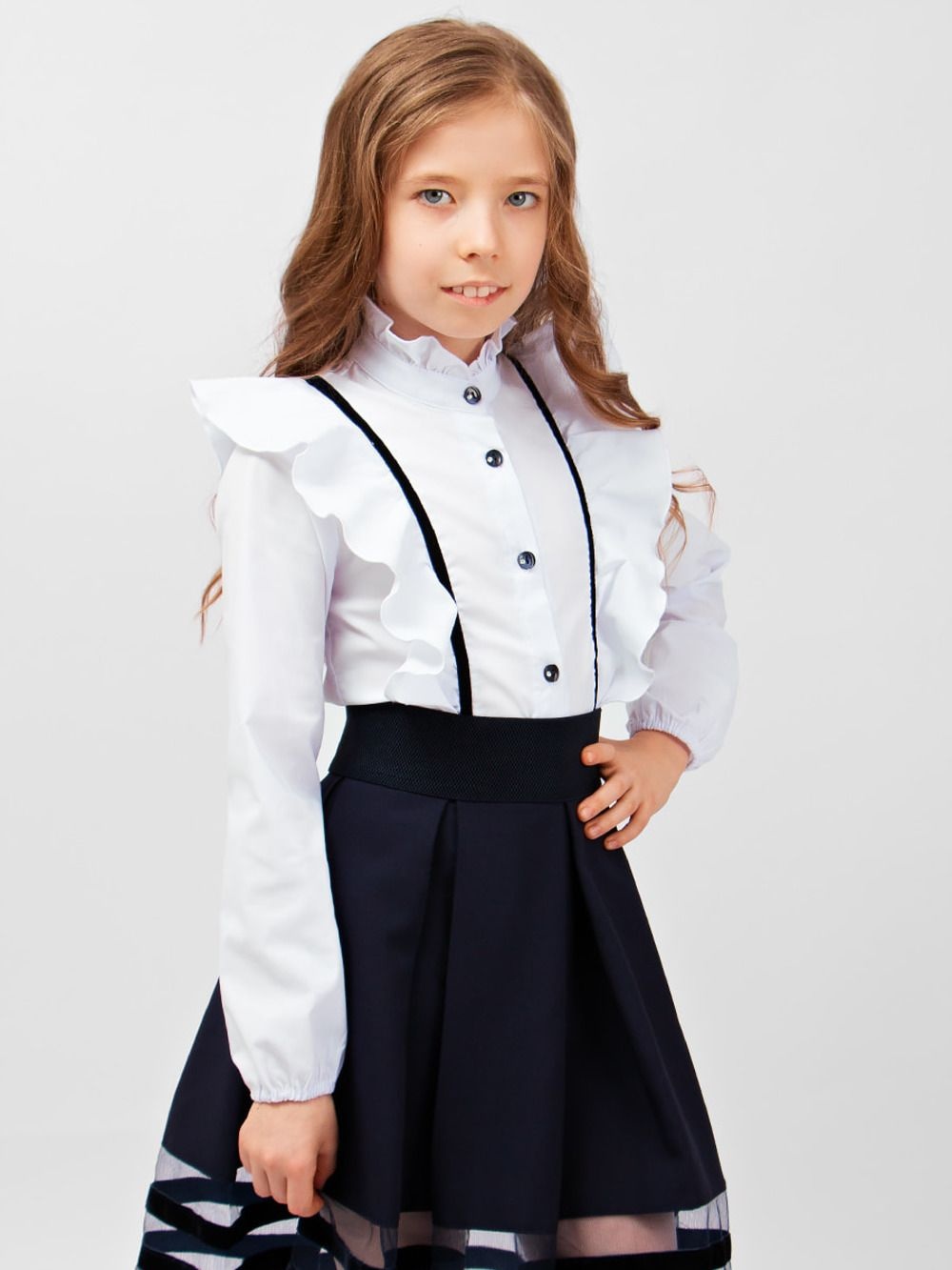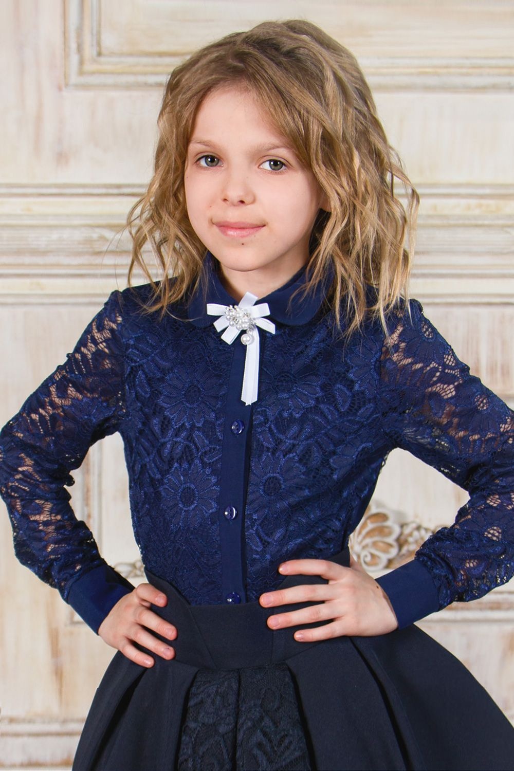 Блузка для девочки Рианна Арт. - темно-синий, белый №Н-13180