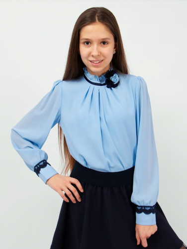 Блузка гипюровая с брошью SP008.1 - голубой
