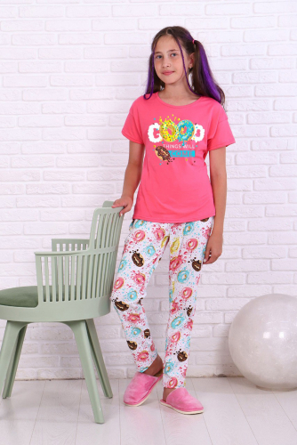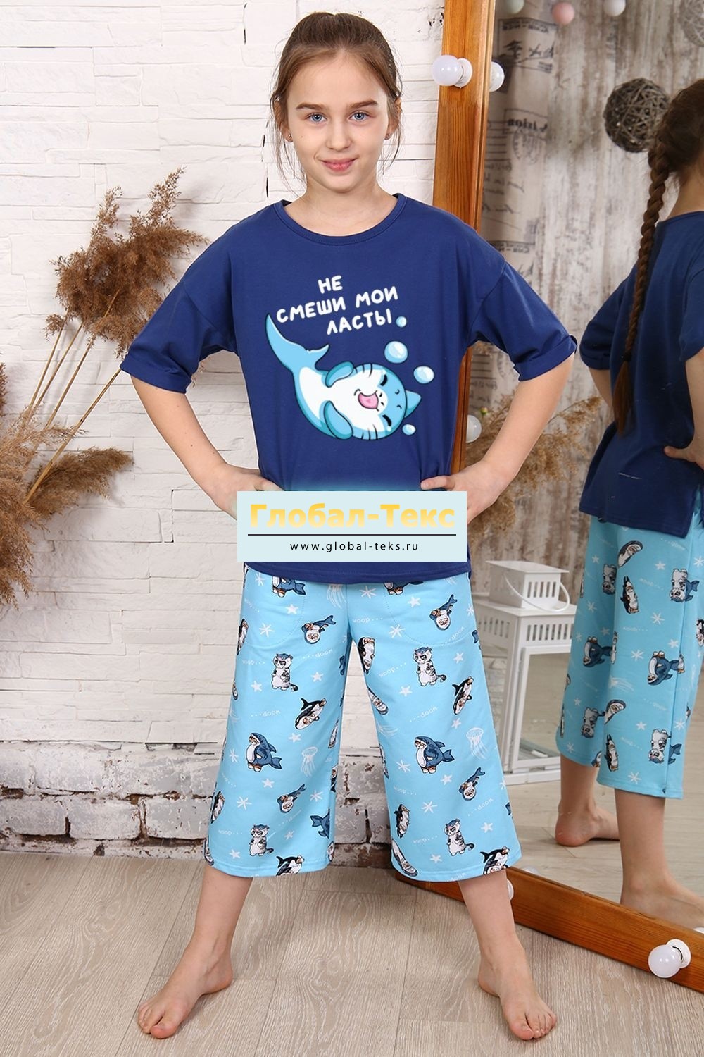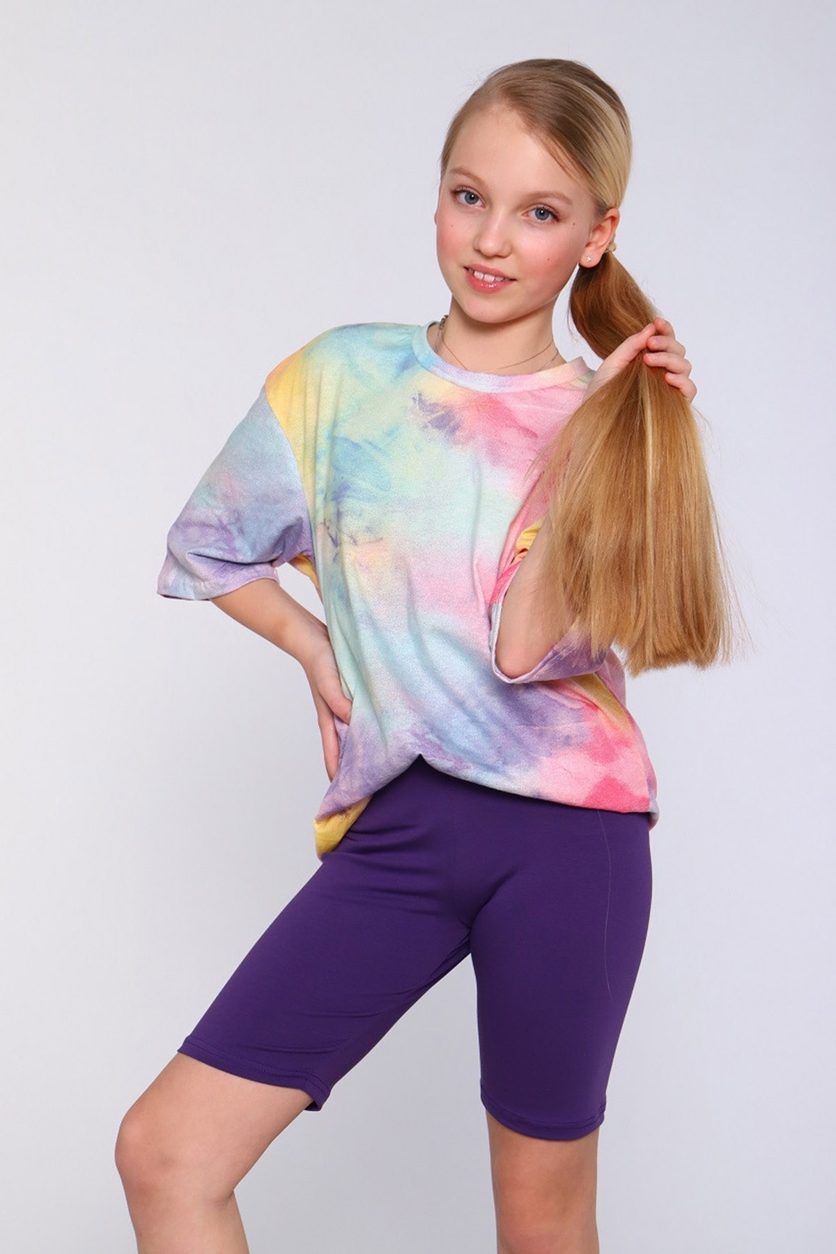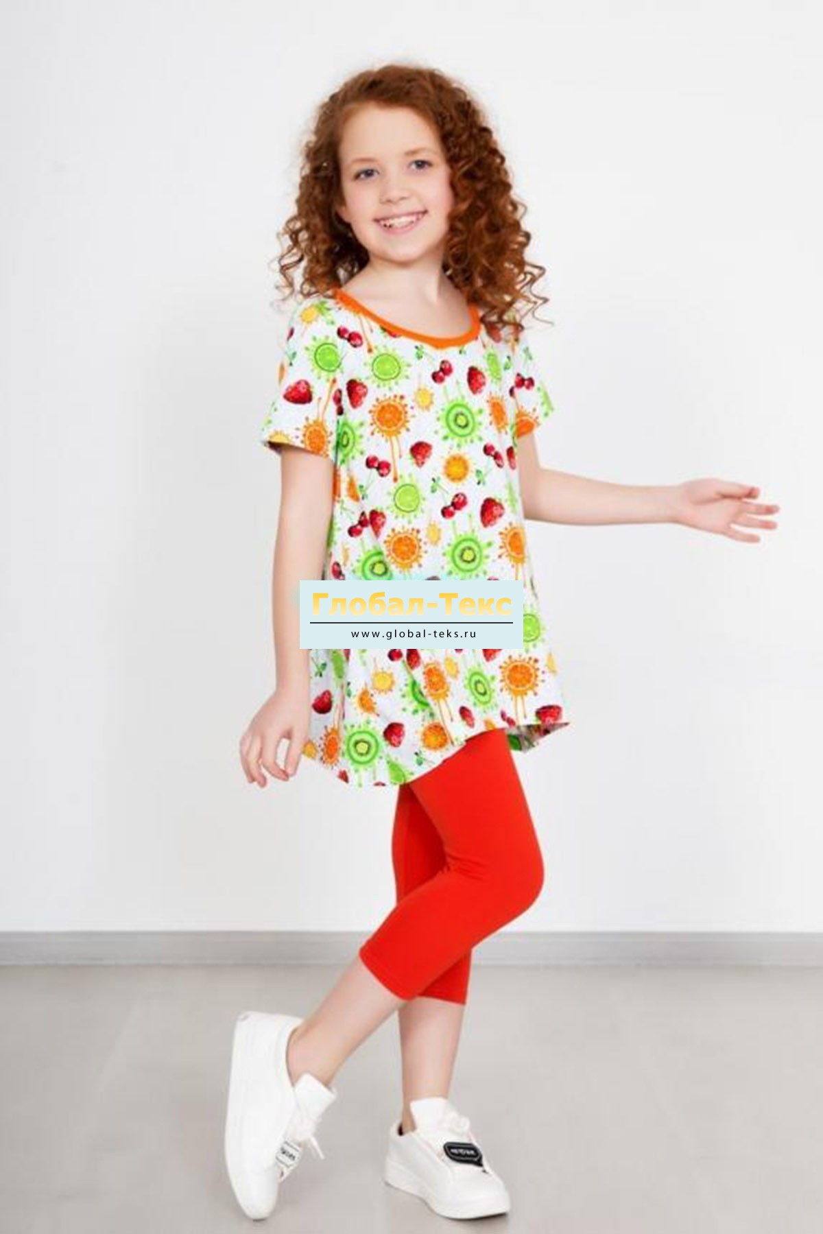Костюм на девочку "Кошка в очках" (туника+лосины укороченные, бирюза) №МРЛ-КСТ.0004
