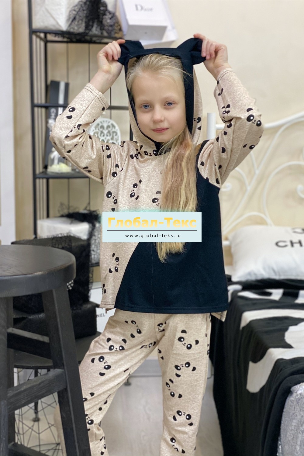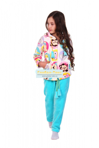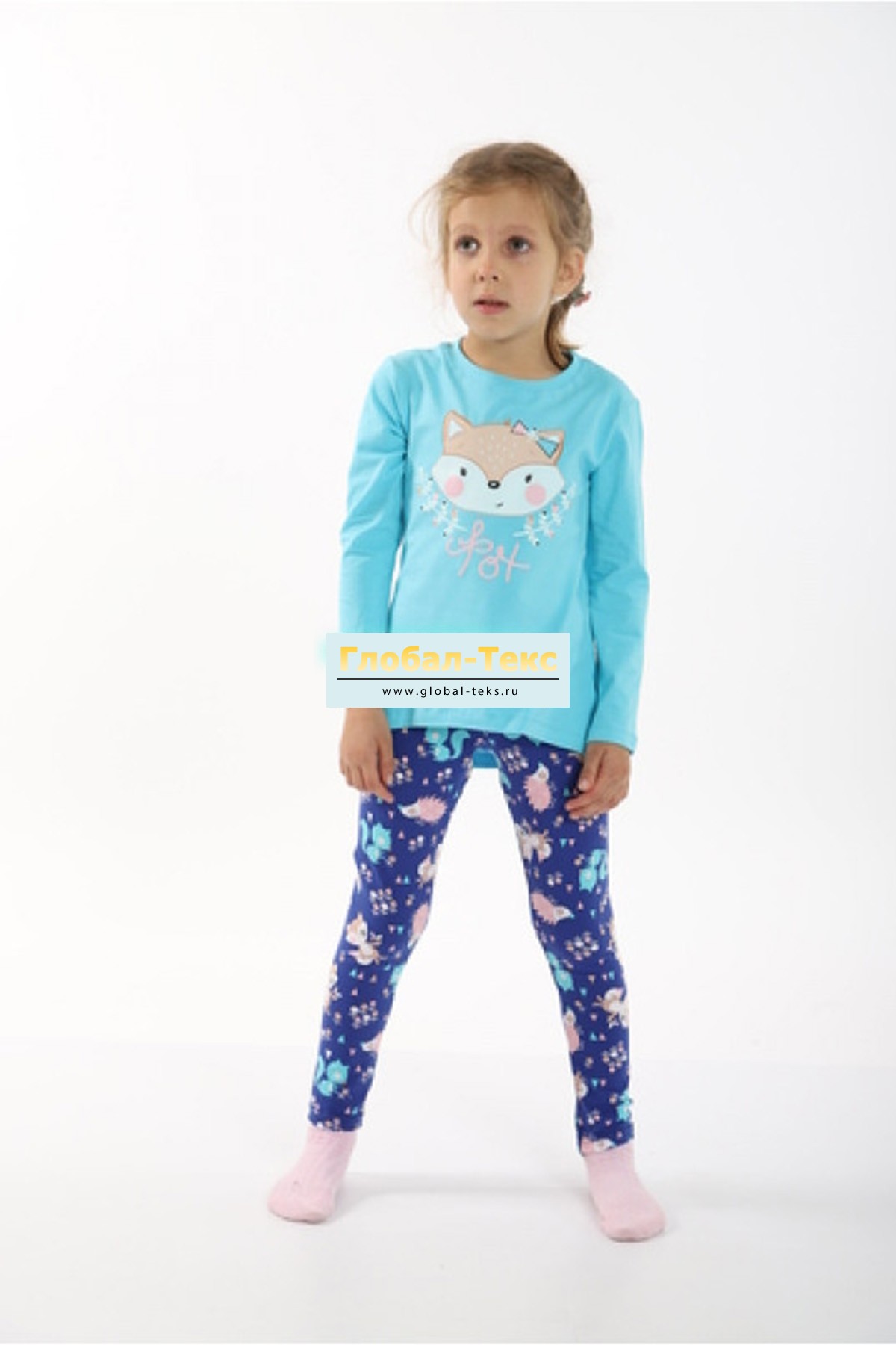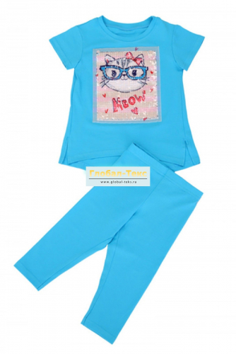 Костюм на девочку "Кошка в очках" (туника+лосины укороченные, светло-розовый/бирюза) №МРЛ-КСТ.0004-1